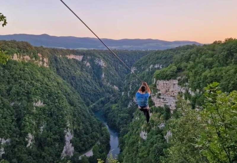Iskusite Unu iz ptičije perspektive! Zipline u Bosanskoj Krupi nudi vam jedinstvenu priliku da preletite rijeku i uživate u spektakularnom pogledu na srednjovjekovnu utvrđenu i smaragdni kanjon.